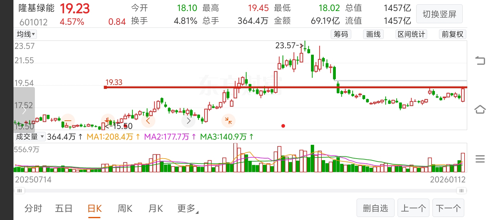 $隆基绿能(SH601012)$ 套住的,给你们带来一个好消息,到了19.32元,破了,代表行情崛起。回本后,仓位马上降到一层,最多两层,最好一层。回本后,马上减仓。