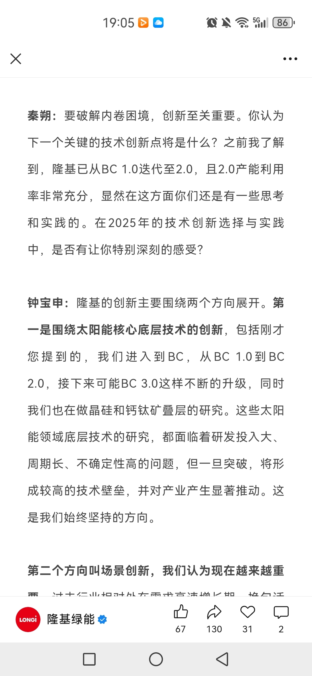 $隆基绿能(SH601012)$ 这是隆基在跨年晚会上说的,钙钛矿是我们始终坚持的方向