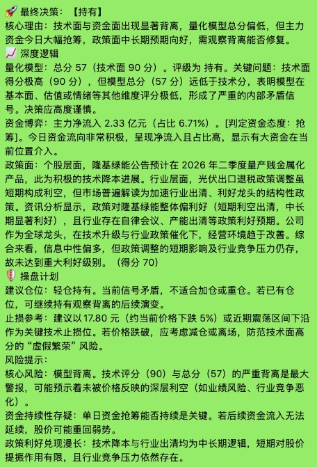 自建模型分析技术面与政策面评分都可以,继续持有