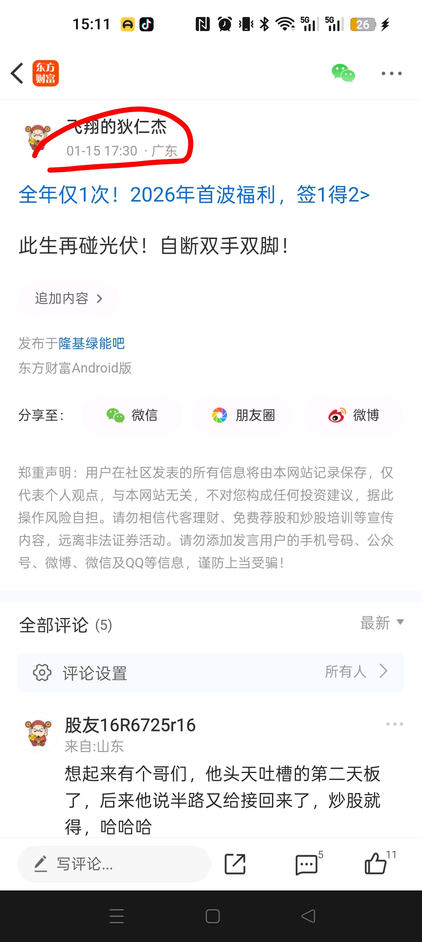 郑重声明:用户在财富号/股吧/博客等社区发表的所有信息(包括但不限于文字、视频、音频、数据及图表)仅代表个人观点,与本网站立场无关,不对您构成任何投资建议,据此操作风险自担。请勿相信代客理财、免费荐股和炒股培训等宣传内容,远离非法证券活动。请勿添加发言用户的手机号码、公众号、微博、微信及QQ等信息,谨防上当受骗!