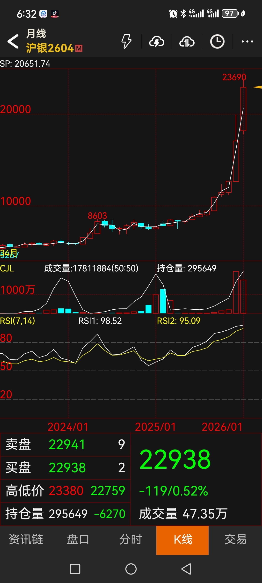 $隆基绿能(SH601012)$ 白银直上直下的走用不多久就结束了,谁见过一直上涨的商品?白银结束之日就是隆基牛头出现之时
