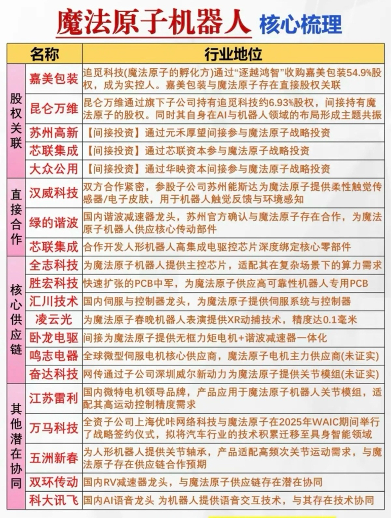 魔法原子机器人,核心梳理!参股股权直接合作核心供应商