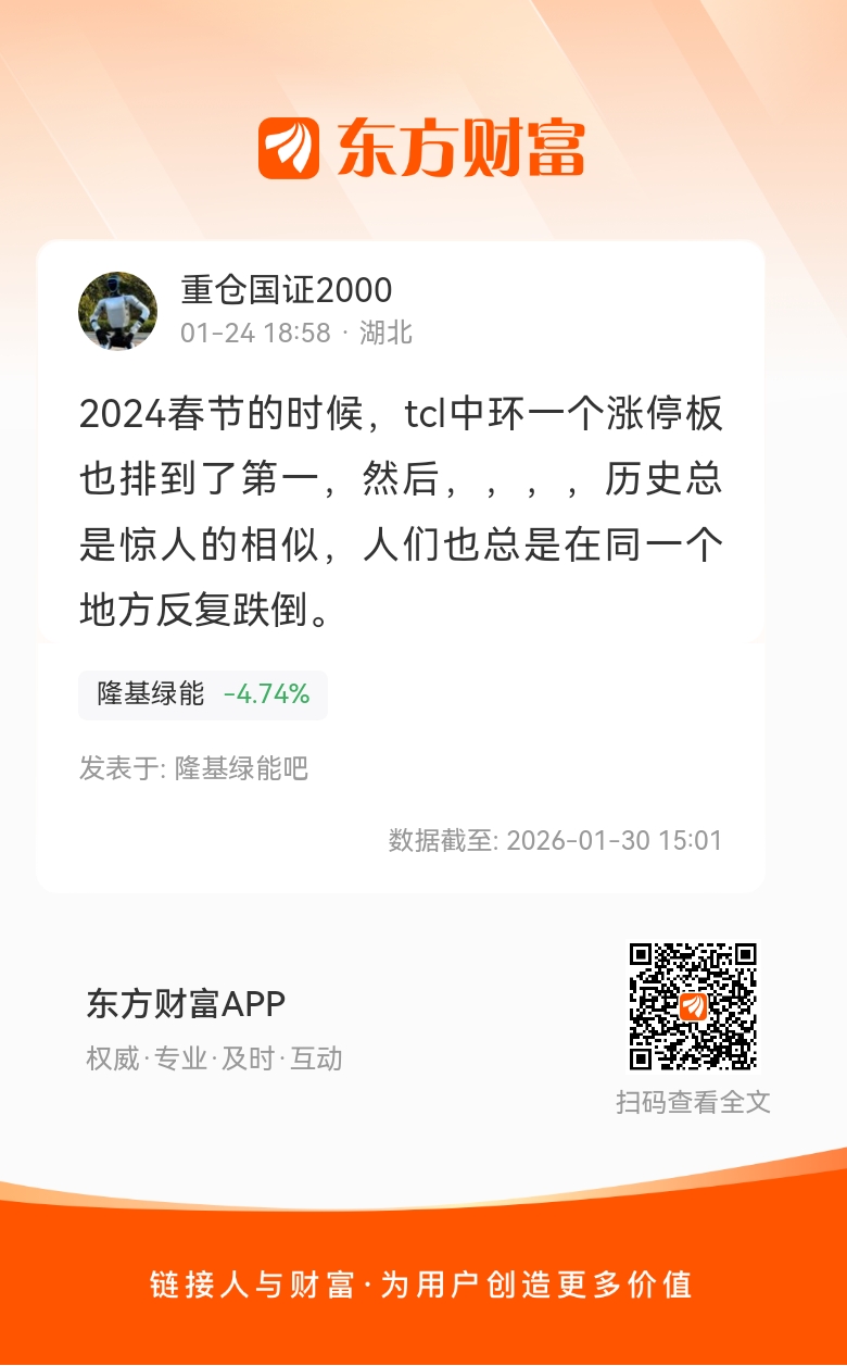 温馨提示: 1.根据《证券法》规定,禁止编造、传播虚假信息或者误导性信息,扰乱证券市场;2.用户在本社区发表的所有资料、言论等仅代表个人观点,与本网站立场无关,不对您构成任何投资建议。用户应基于自己的独立判断,自行决定证券投资并承担相应风险。《东方财富社区管理规定》