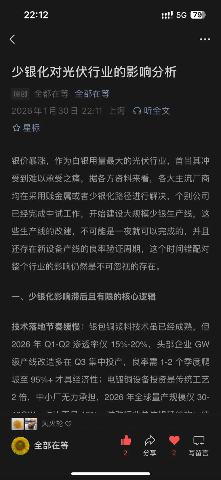 $隆基绿能(SH601012)$ $天合光能(SH688599)$ $晶澳科技(SZ002459)$ 少银化或者贱银工艺对光伏行业短期影响有限,关注未来前景。主要同行公司有:晶科能源,东方日升,爱旭股份,TCL中环,通威股份等。