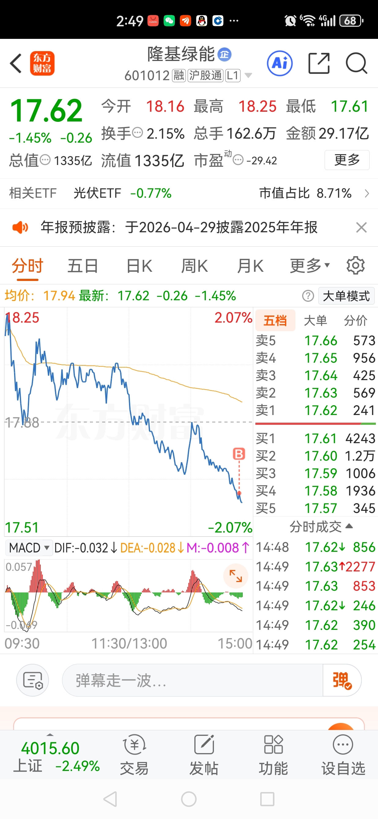 $隆基绿能(SH601012)$ 买一点,留到明天耍