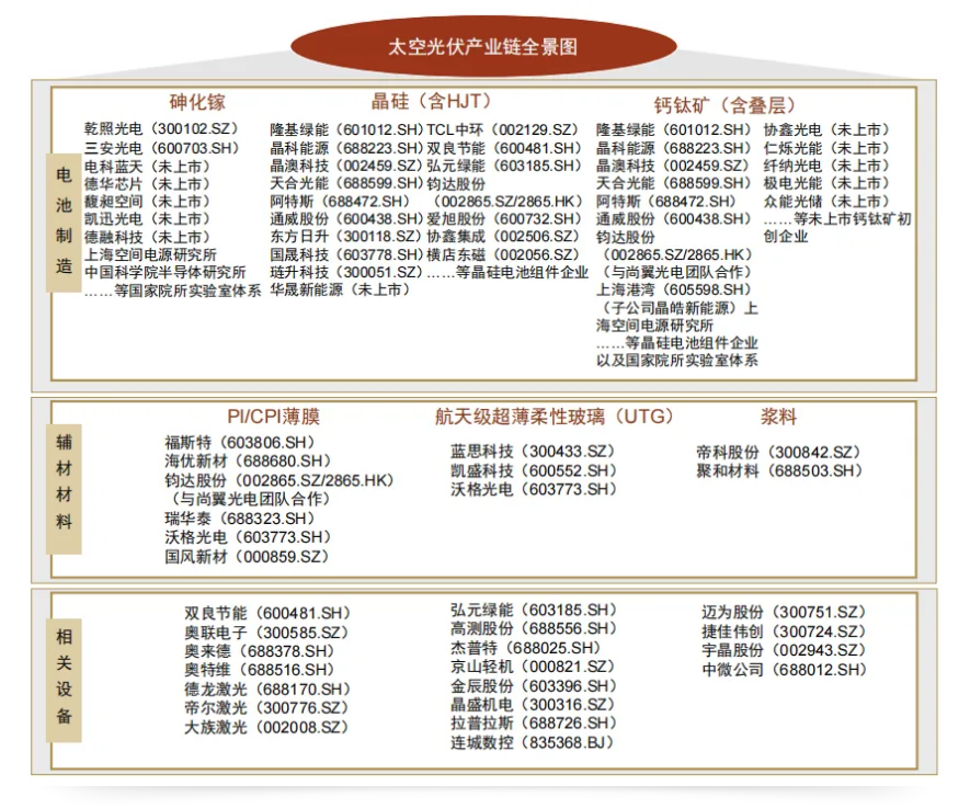 资料显示,太空光伏产业链涉及电池制造、辅材材料和相关设备三大环节,据机构预测,2025-2030年太空光伏的需求重心仍为服务传统应用领域的低轨卫星,市场规模或达千亿元;2030年后,若太空算力进入乐观部署阶段,太空光伏需求有望迎来台阶式放大。