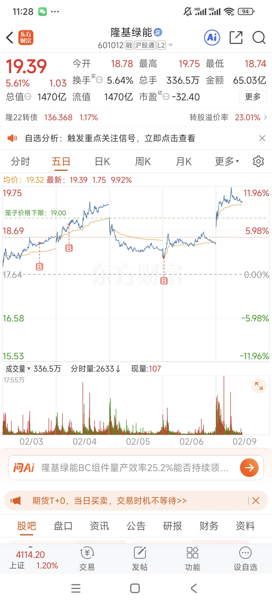 $隆基绿能(SH601012)$ 一个钙钛矿电池前沿技术公司有啥好担心的?再这说了这个位置不高了,跌幅有限,我做T一塌糊涂,所以只坚定锁仓,下来了就买一点