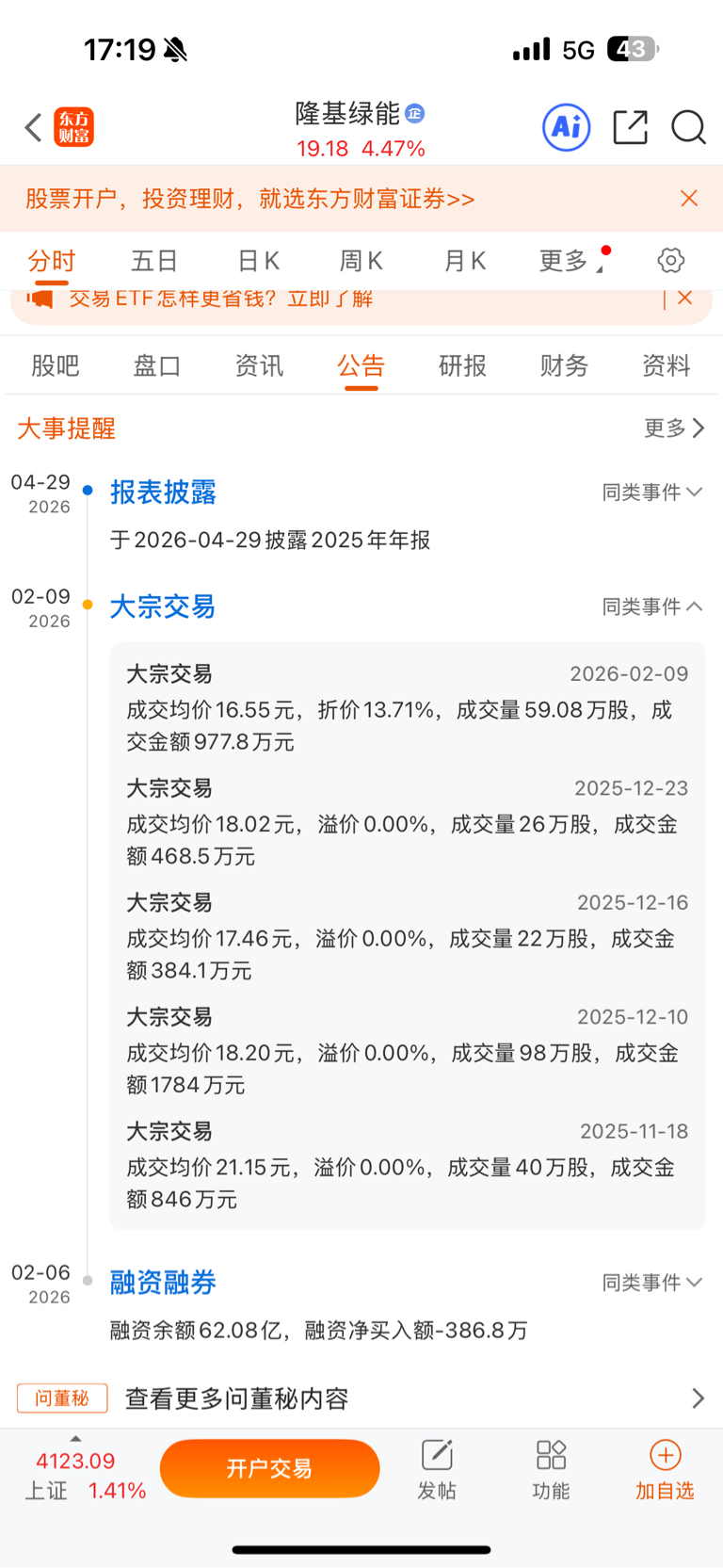 $隆基绿能(SH601012)$ 16 元大宗交易成交价,折价率 15%?这是要倒闭的节奏啊