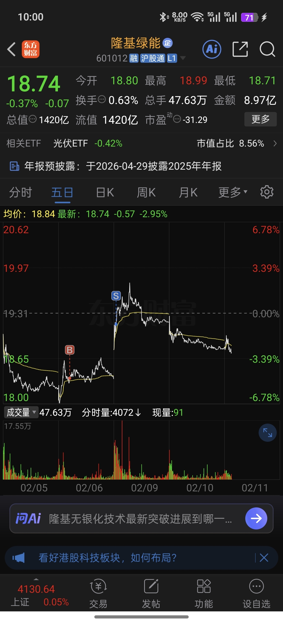 $隆基绿能(SH601012)$ 跌到18以下我再加仓