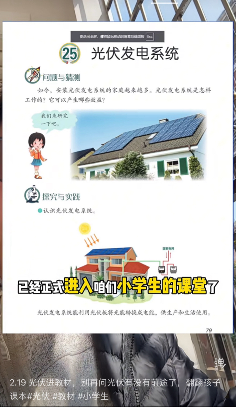 光伏发电已经写入小学教材了,国家战略肯定要从小抓起