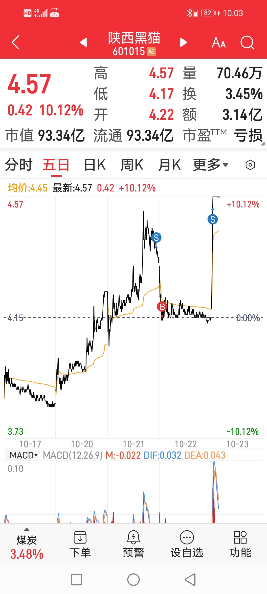 $陕西黑猫(SH601015)$ 前天减了半仓,昨天又加了进去,挣个几毛钱的差价,今天又减了半仓,不知道明天还有机会加仓不!