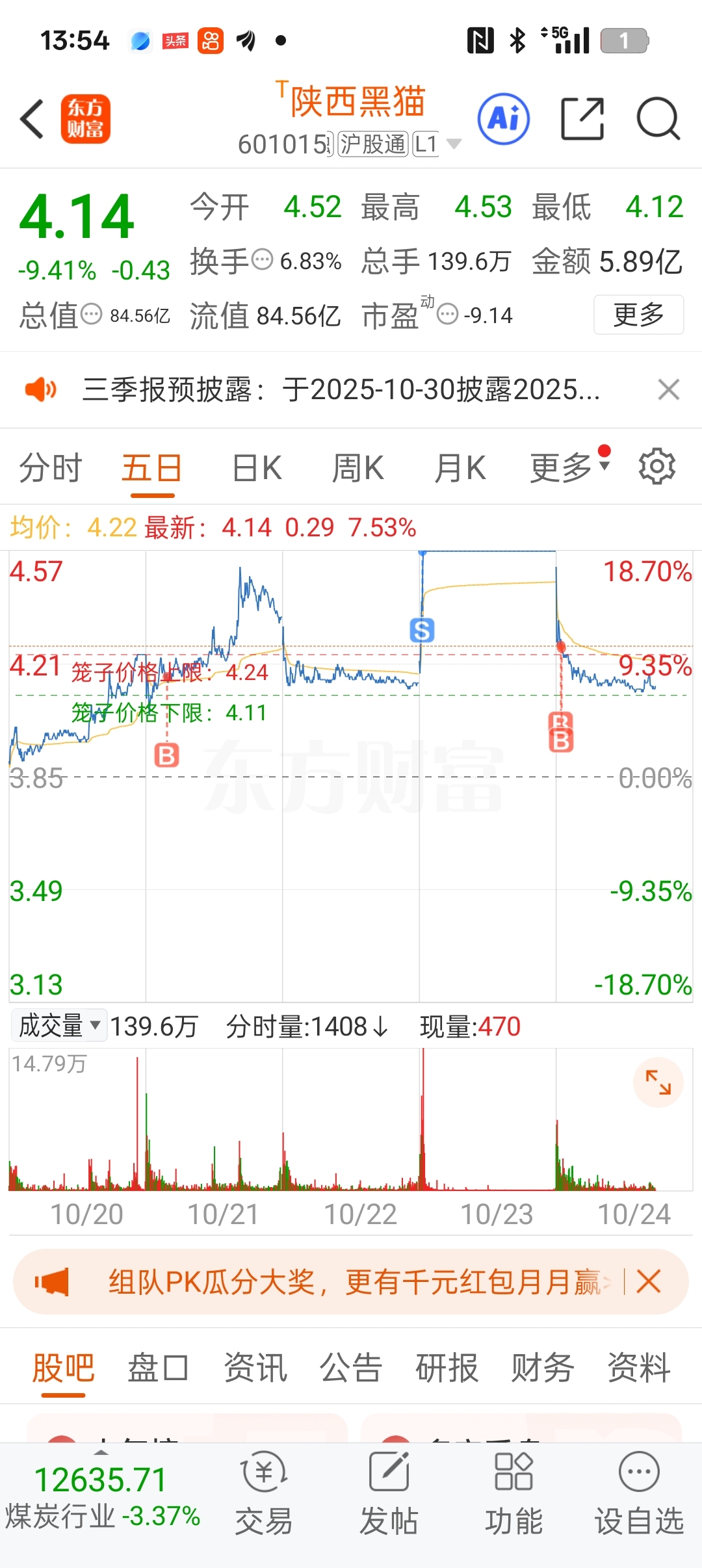 $陕西黑猫(SH601015)$ 加油跌还挣钱呢