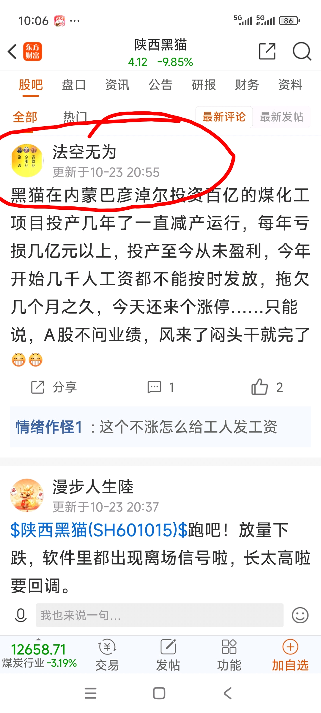 $陕西黑猫(SH601015)$ 但凡有人周四听我的,有点敬畏之心撤退,不至于周五吃个跌停、周末提心吊胆、寝食难安。
