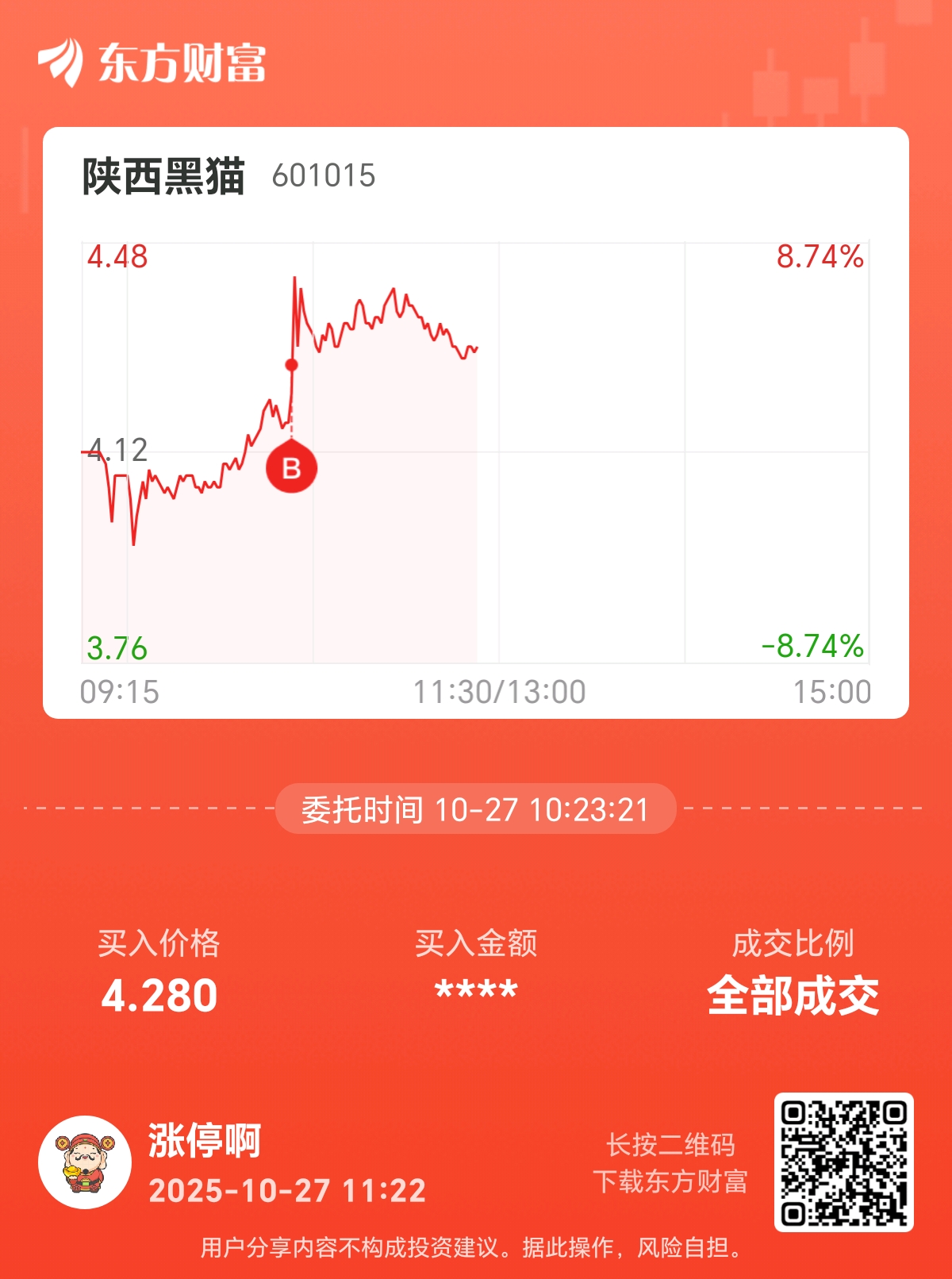 $陕西黑猫(SH601015)$ 我卖了方正过来买你的,别让我失望啊