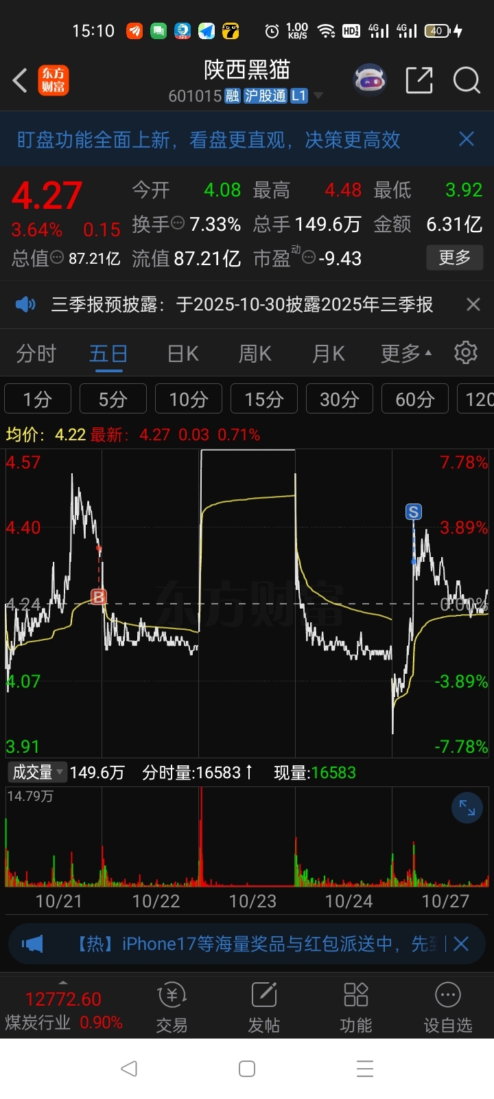 $陕西黑猫(SH601015)$ 少了麒麟臂,亏了一个点