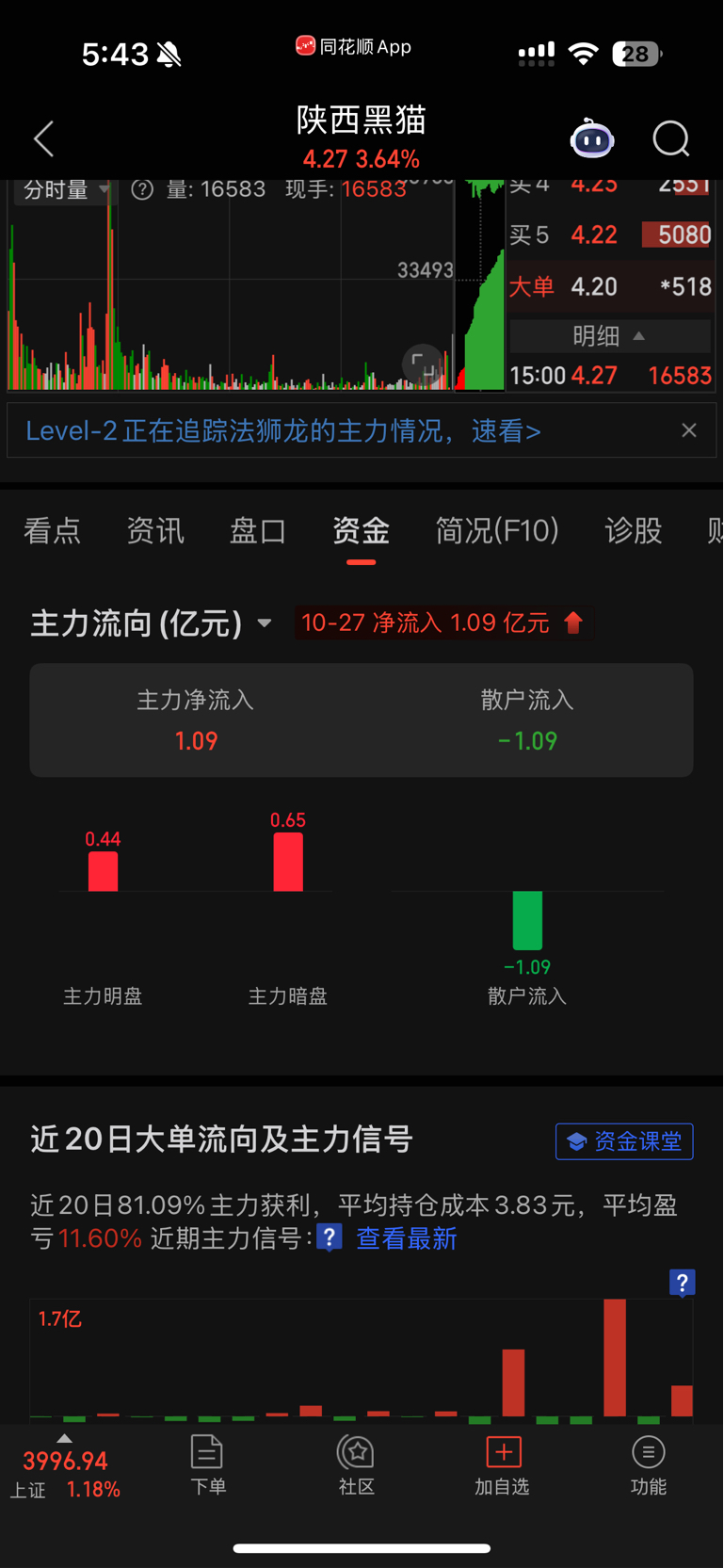 $陕西黑猫(SH601015)$ 洗走不少散户