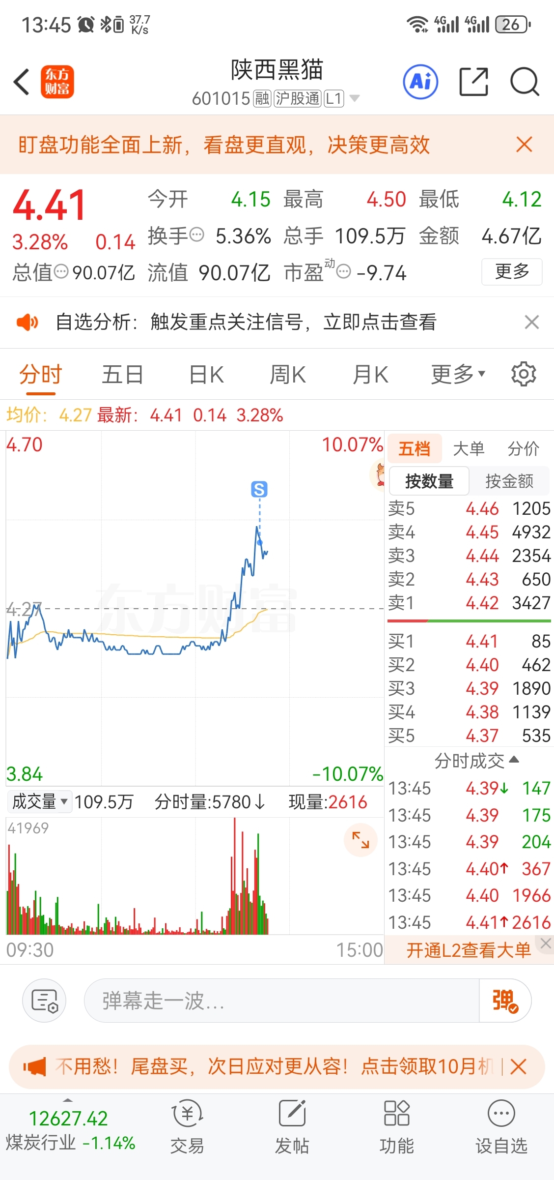 $陕西黑猫(SH601015)$ 黑毛,加油