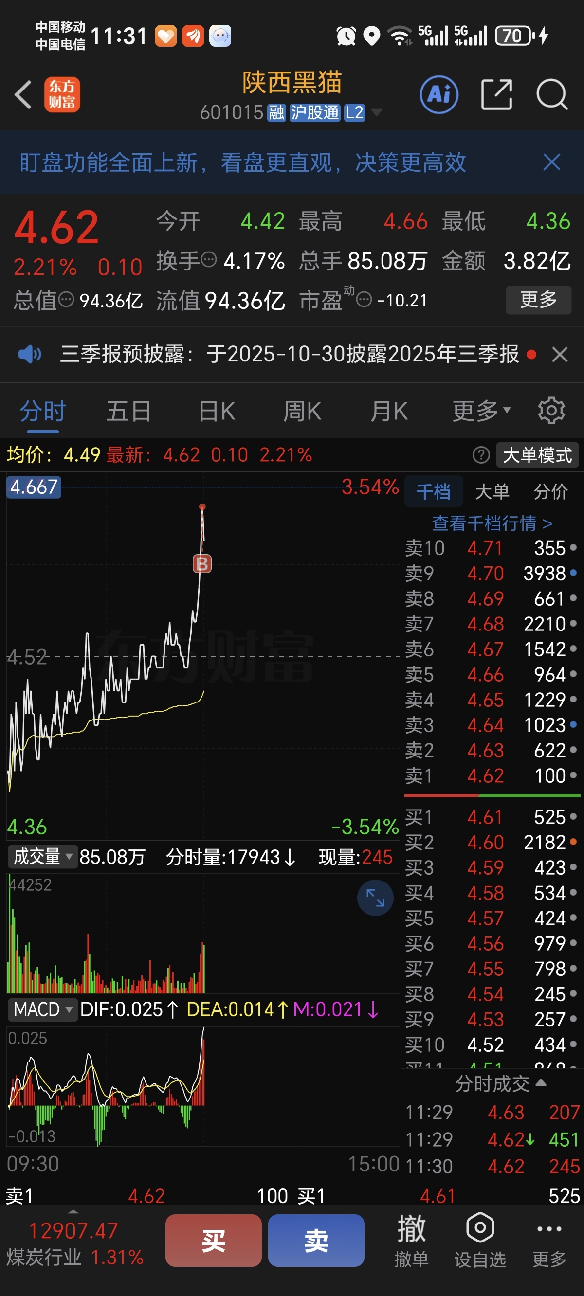 $陕西黑猫(SH601015)$  我追进来了哈哈哈主力别埋我啊!
