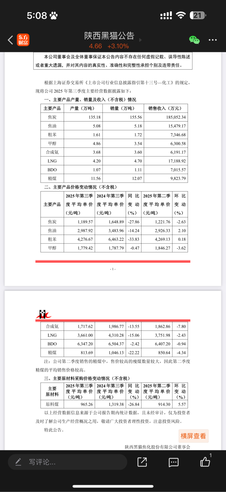 $陕西黑猫(SH601015)$ 三季度平均单价比去年同比便宜了27%,亏损是价格下行导致的。所以看未来的价格能不能上行了。换个角度来看未来的空间很大啊。明天低开捡筹码咯!