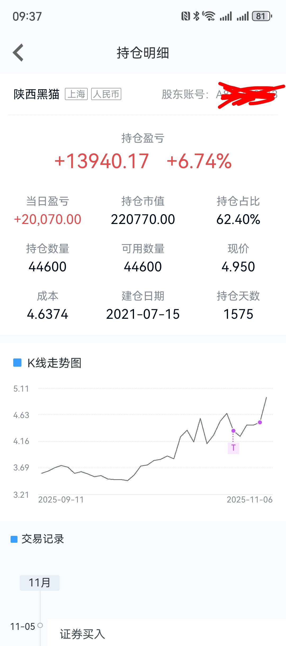 $陕西黑猫(SH601015)$ 21年拿到现在