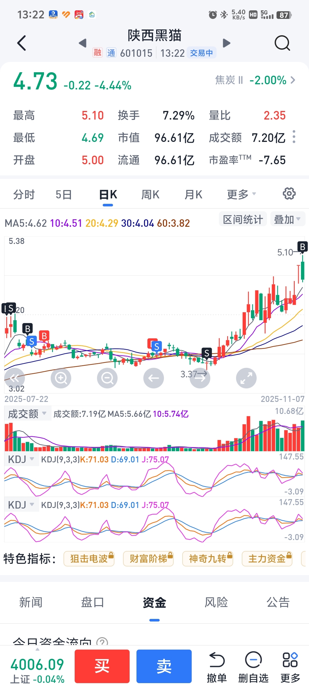 $陕西黑猫(SH601015)$ 又是我的错,卖完大涨40%,买入下跌翻绿4.44%