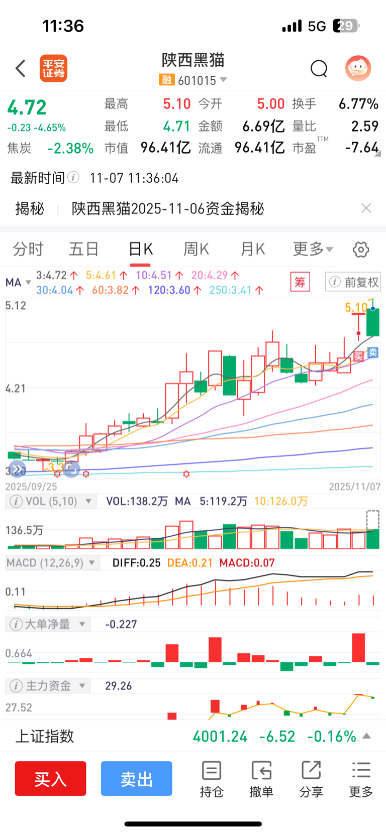 $陕西黑猫(SH601015)$ 昨天买了,今天早上集合竞价太弱,直接挂低价卖了