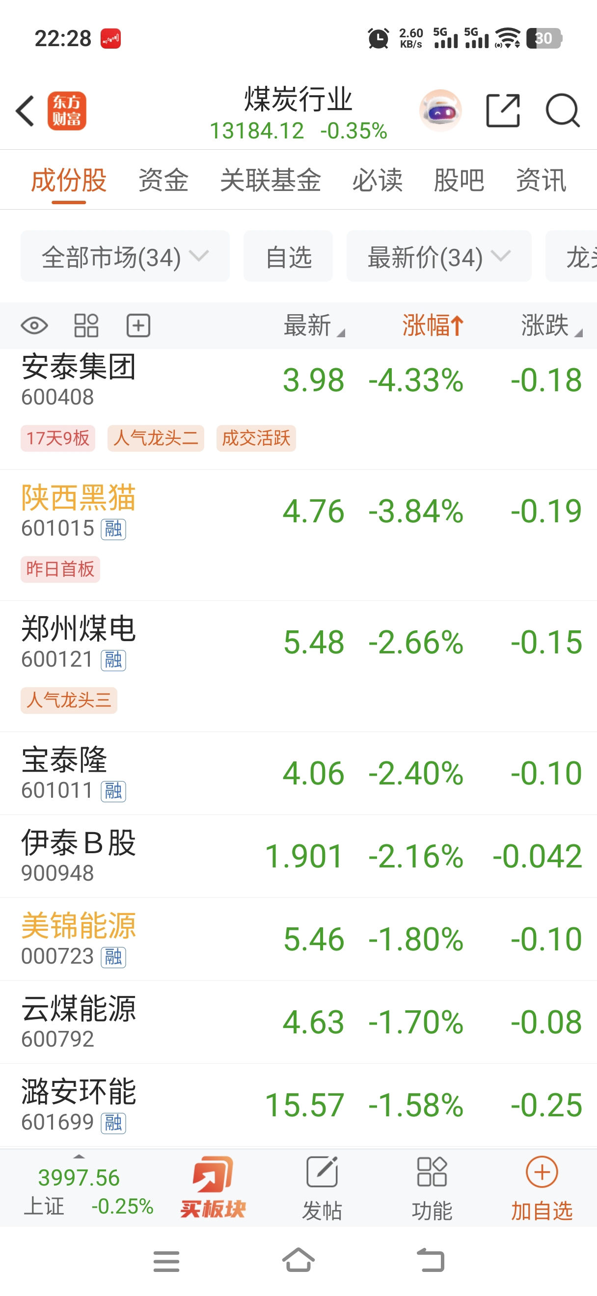 $陕西黑猫(SH601015)$ 这几只冒绿光的通通买进,跑步前进