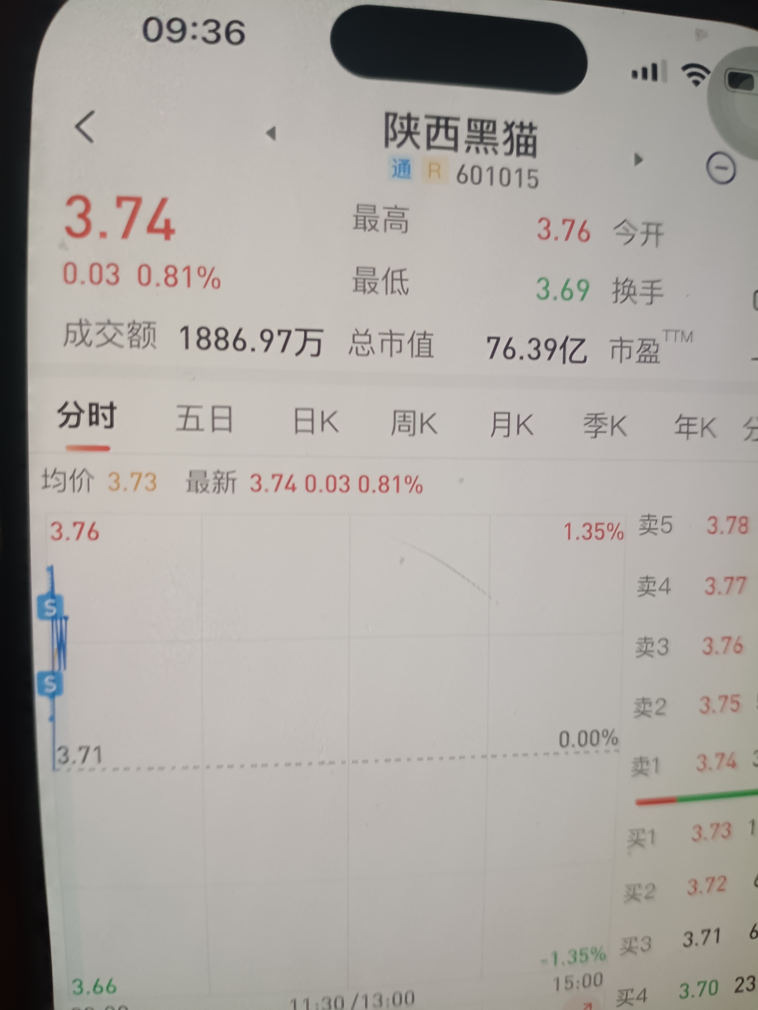 $陕西黑猫(SH601015)$ 今天盘口多头看涨,涨了赚钱就卖,买股票的目的就是赚钱,股市赚钱非常困难,能赚就好。