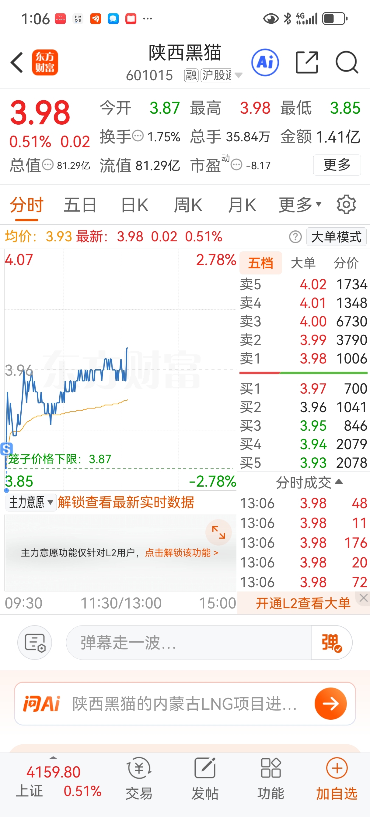$陕西黑猫(SH601015)$ 昨晚出公告哪个人让挂3.85出的,