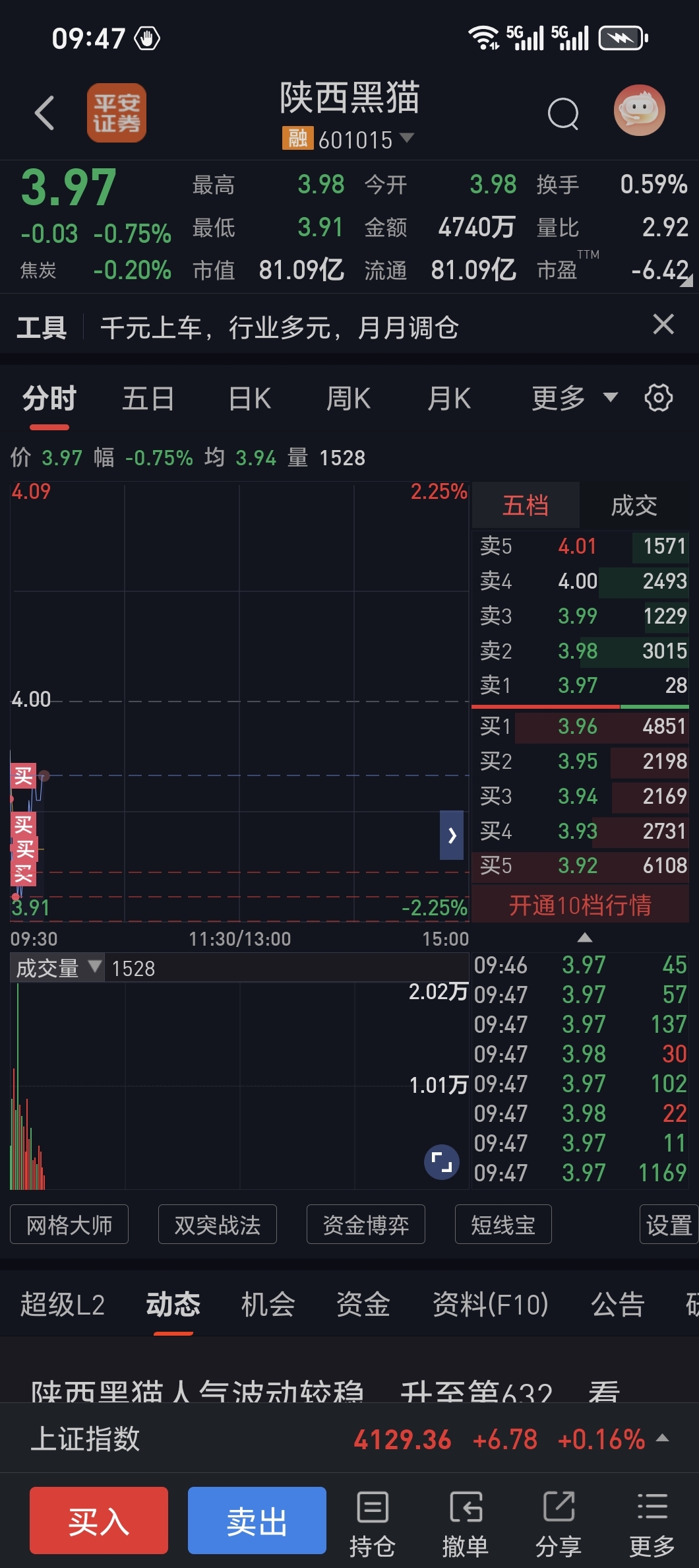 $陕西黑猫(SH601015)$ 低开就买
