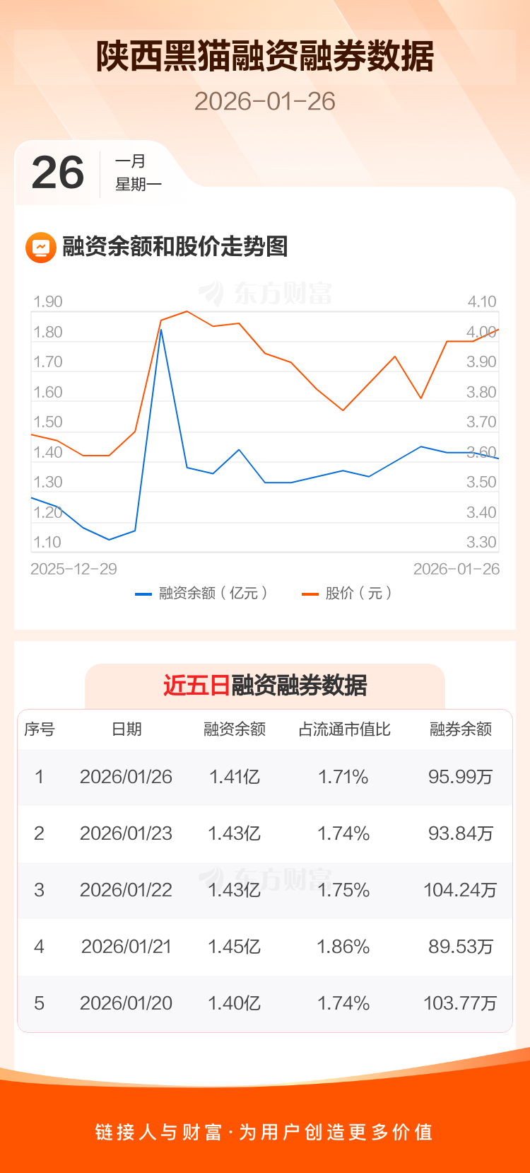 交易所最新数据显示,陕西黑猫于2026年1月26日获融资买入1873.85万元,融资偿还2048.59万元,当日融资净偿还174.74万元。目前,该股融资余额1.41亿,占流通市值比例为1.71%。