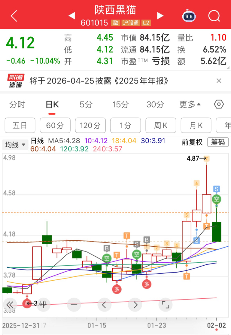 $陕西黑猫(SH601015)$ 1月中旬建仓以来,今天剩点底仓全清了