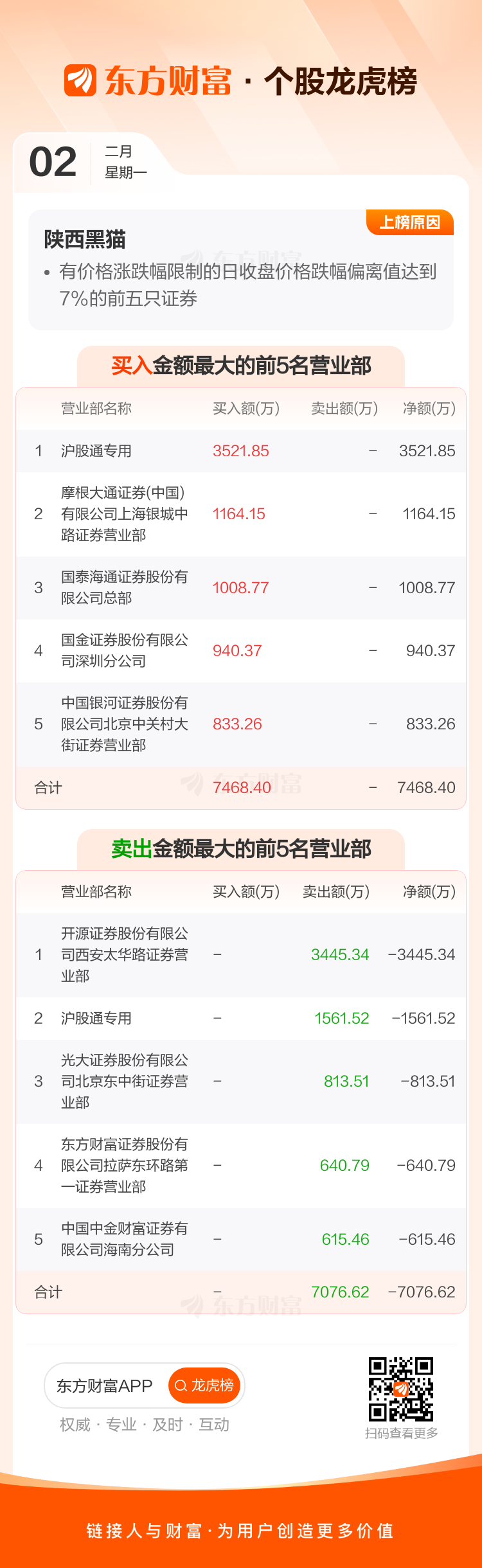 陕西黑猫(601015)龙虎榜数据(02-02)