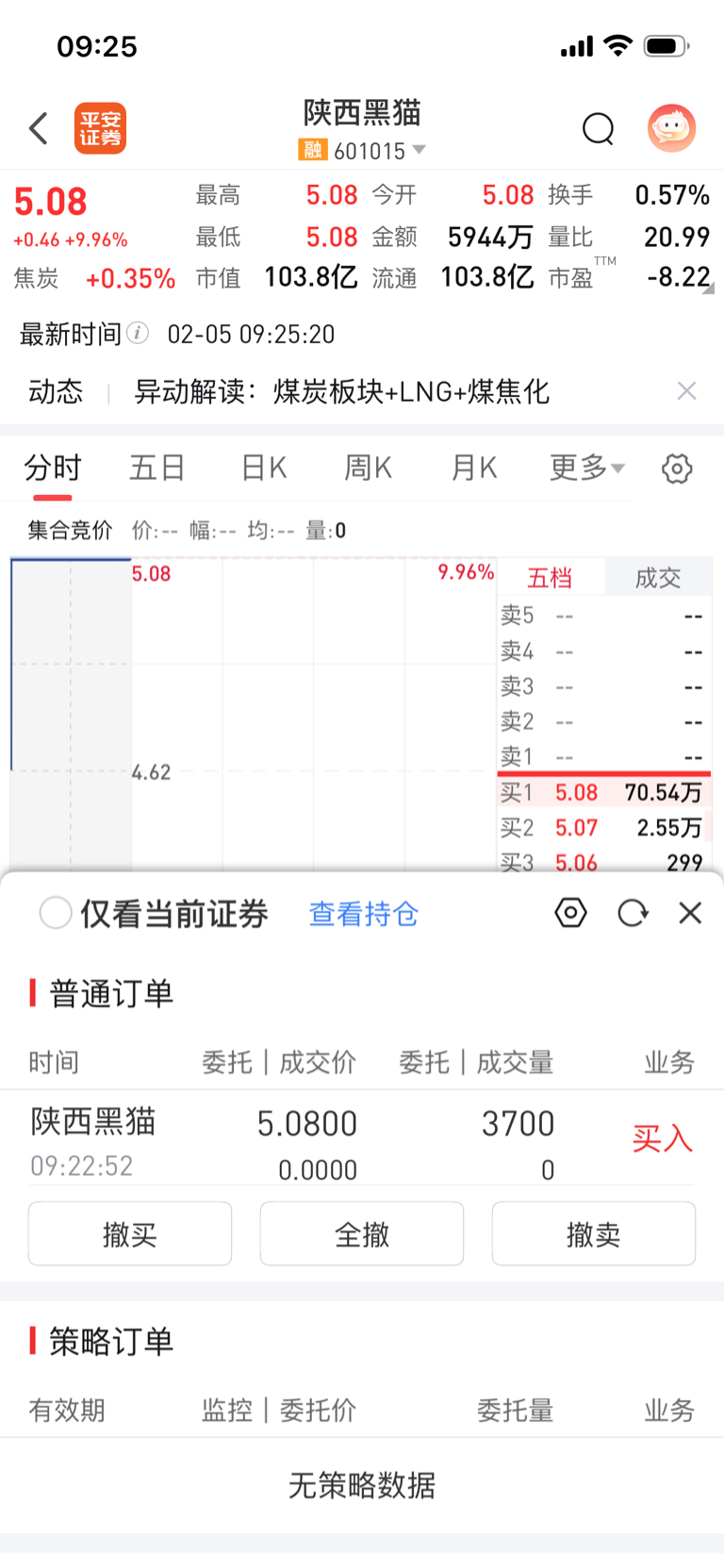 $陕西黑猫(SH601015)$ 是不是进不去了