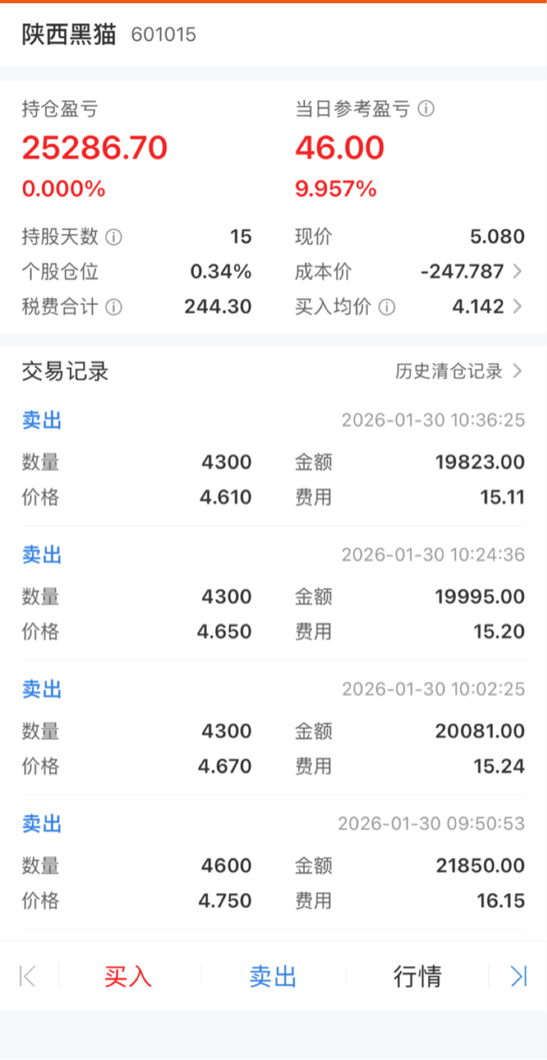 $陕西黑猫(SH601015)$ 甘,46块我不要,快跌停
