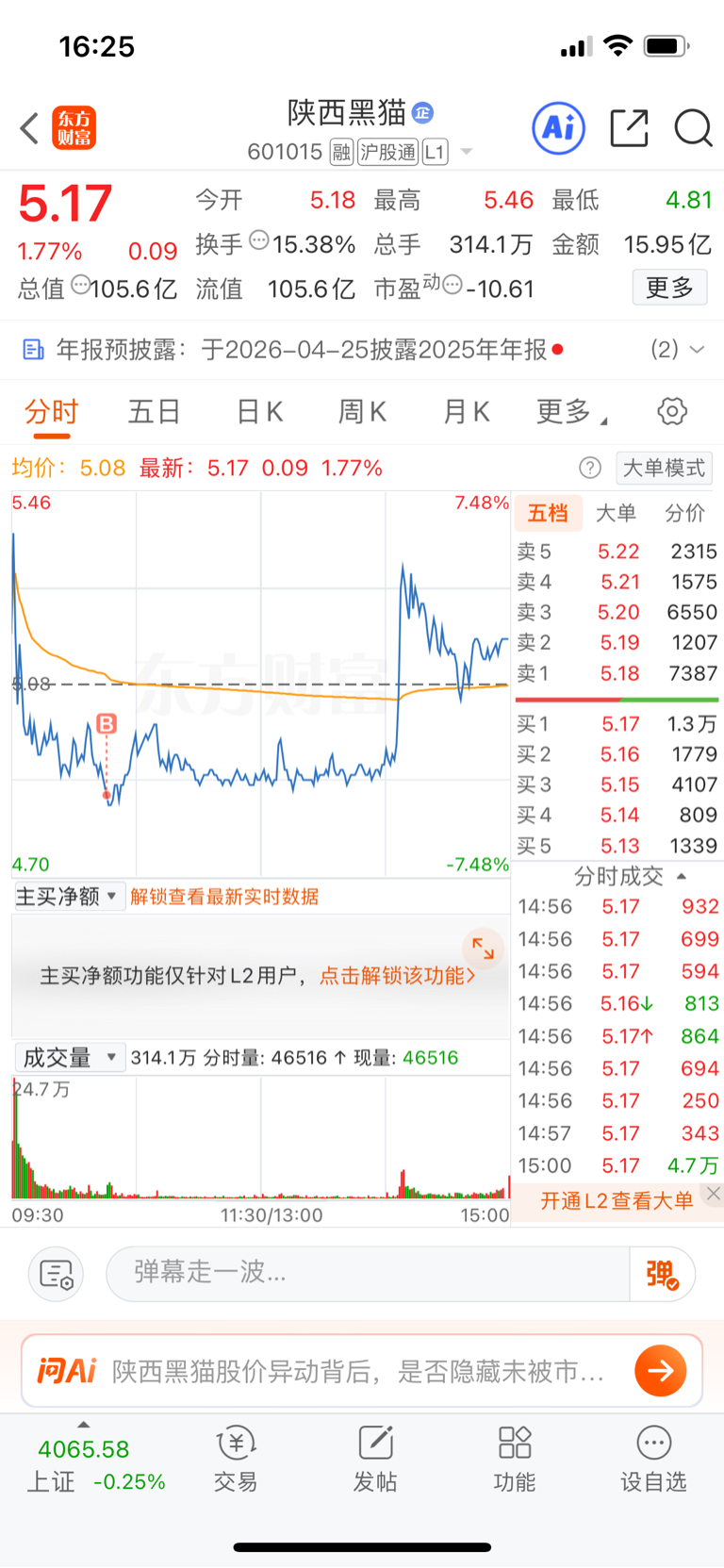 $陕西黑猫(SH601015)$