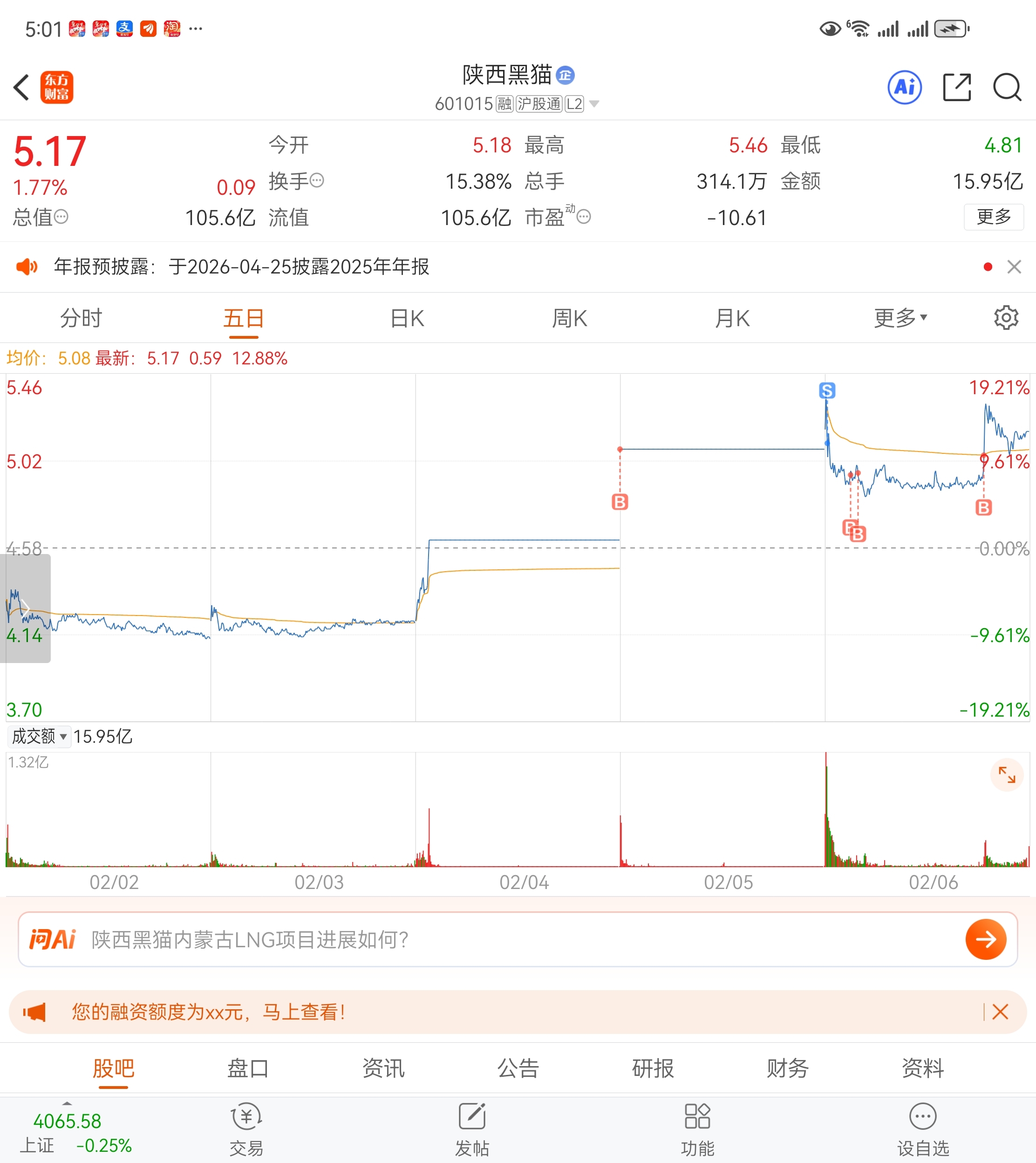 $陕西黑猫(SH601015)$ 周一黑猫带煤炭起飞。