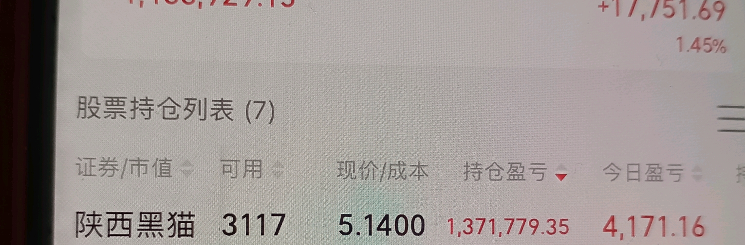 $陕西黑猫(SH601015)$ 陕西黑猫早盘收盘跌了三分钱,我账户红了4000多。
