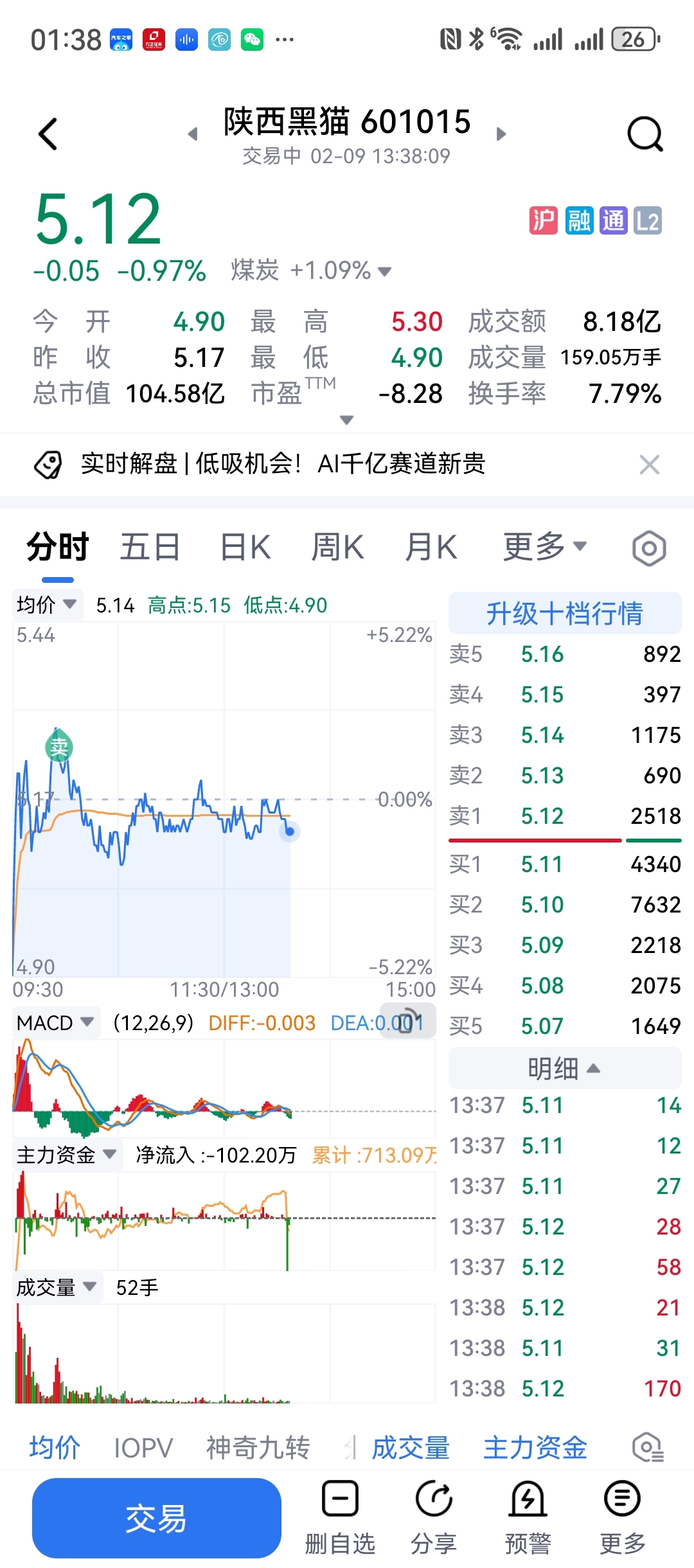 $陕西黑猫(SH601015)$ 卖了留下的发财