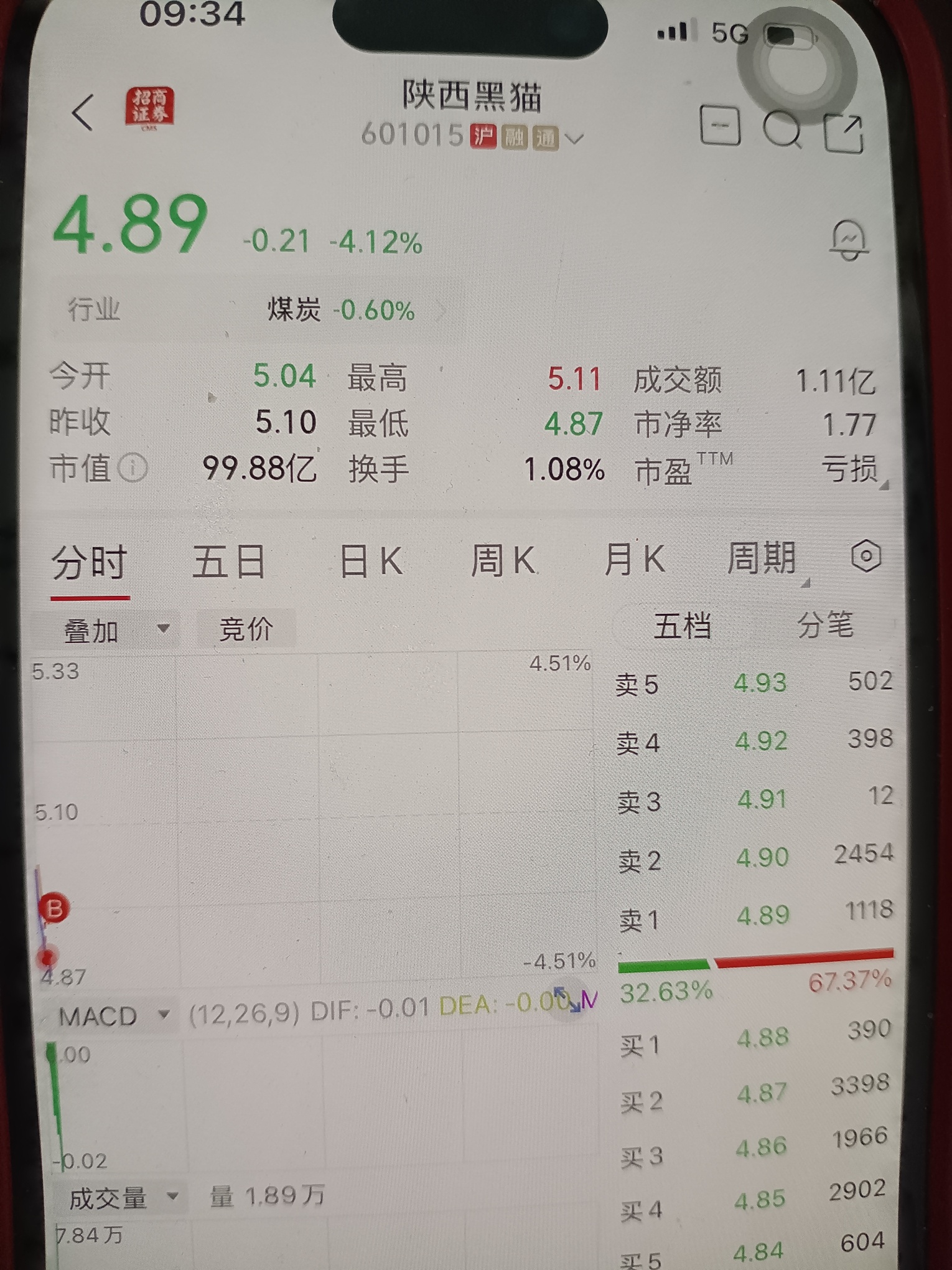 $陕西黑猫(SH601015)$ 今天开盘大跌,倒车接人了。我继续买。