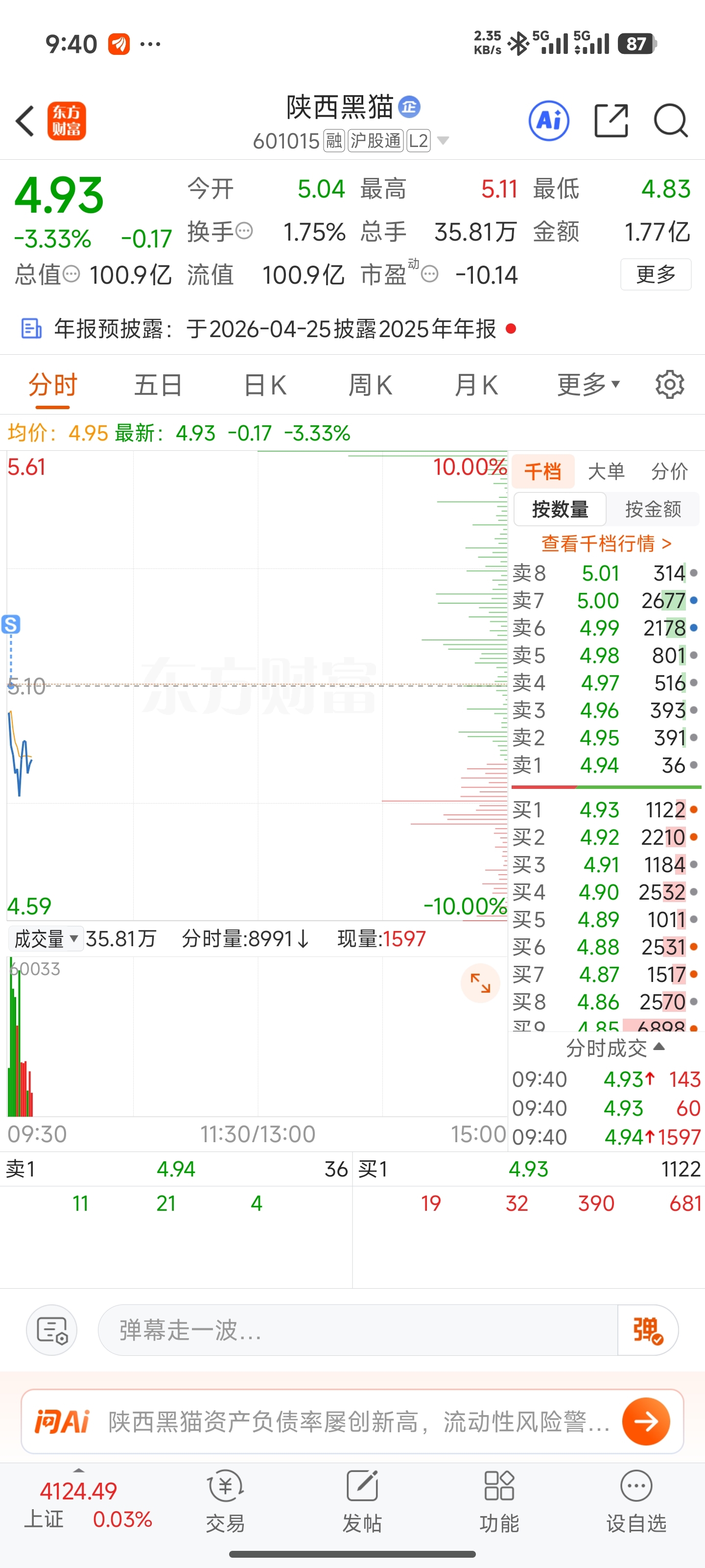 $陕西黑猫(SH601015)$ 才卖出去400股,很烦,还有2800股在里面
