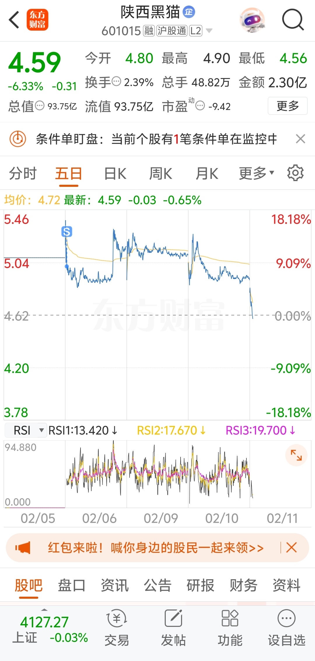 $陕西黑猫(SH601015)$ 还好之前走了,本来想着它调整好再进来