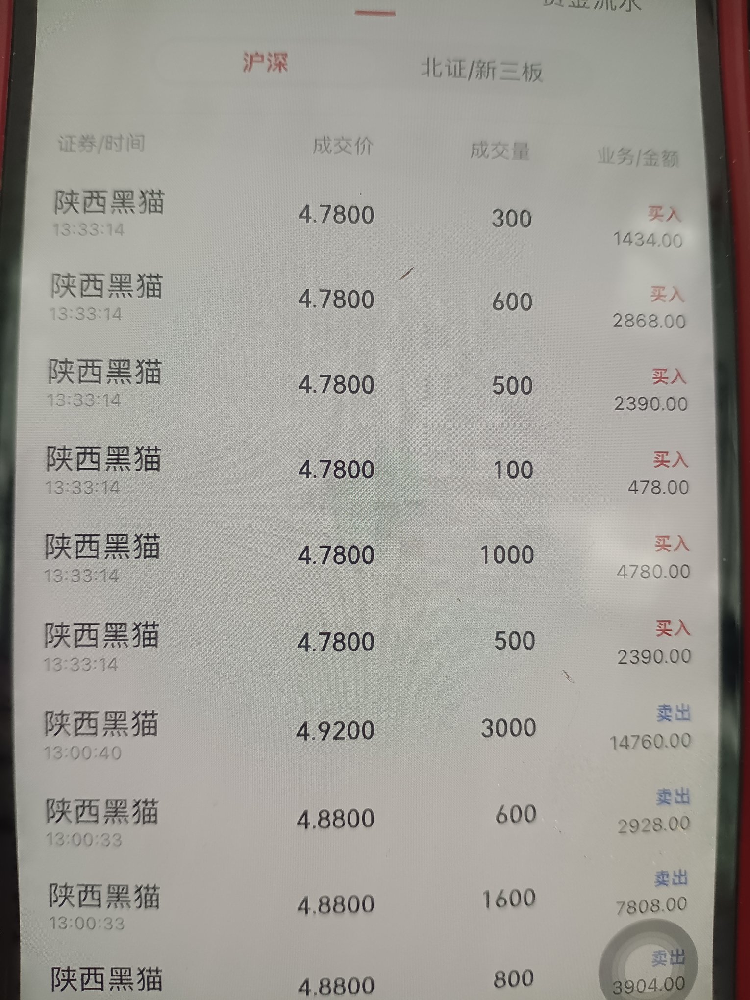 $陕西黑猫(SH601015)$ 今天就博一下会红盘,果然还是红了二分钱。赶紧4.9附近卖卖卖。先高卖再说,一会到4.7就买回来。