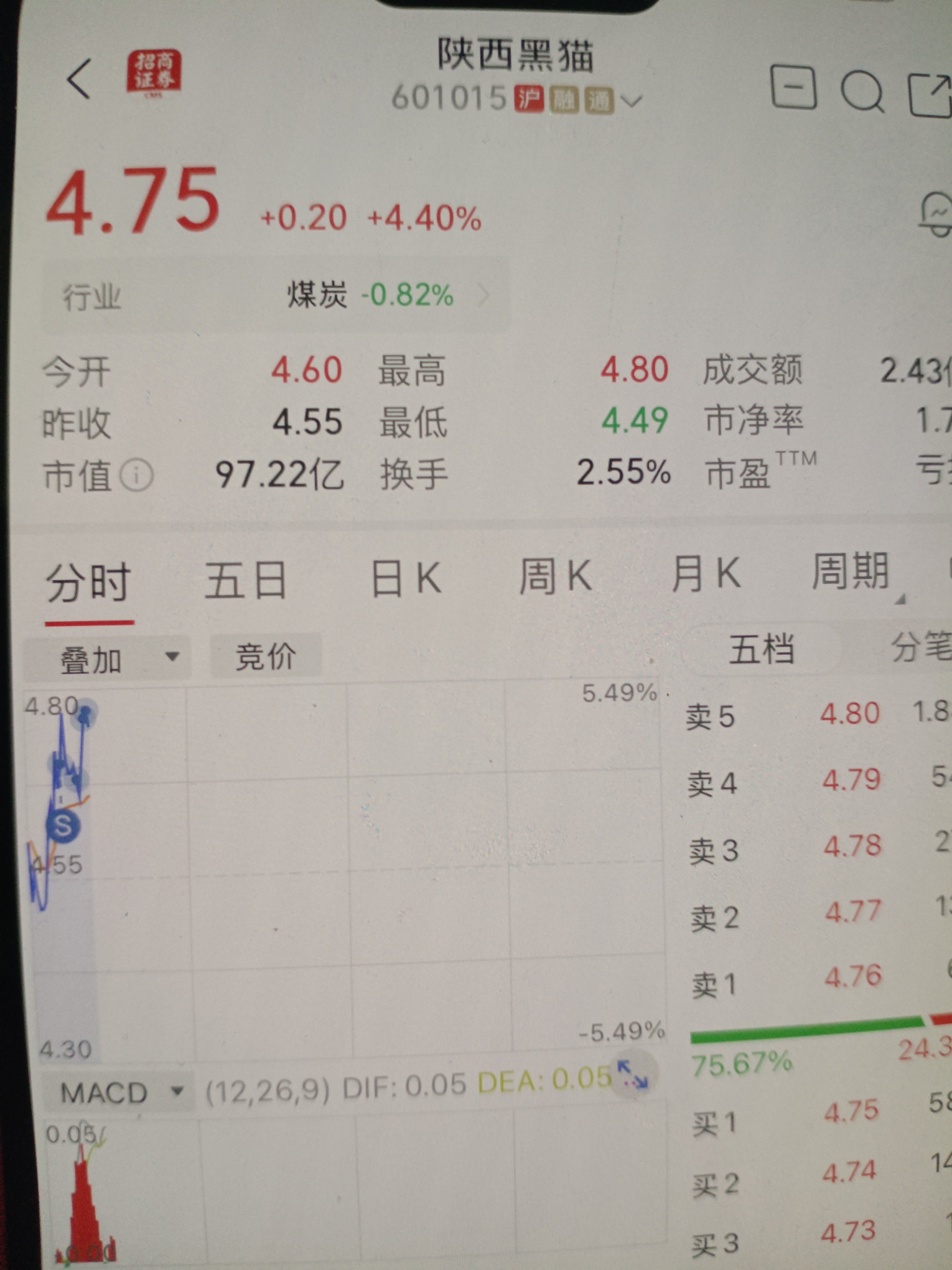 $陕西黑猫(SH601015)$ 好多人说我是反向指标,我卖了就涨,我今天就大量卖,只要股价涨,我就像蜡烛一样自己照亮大家。
