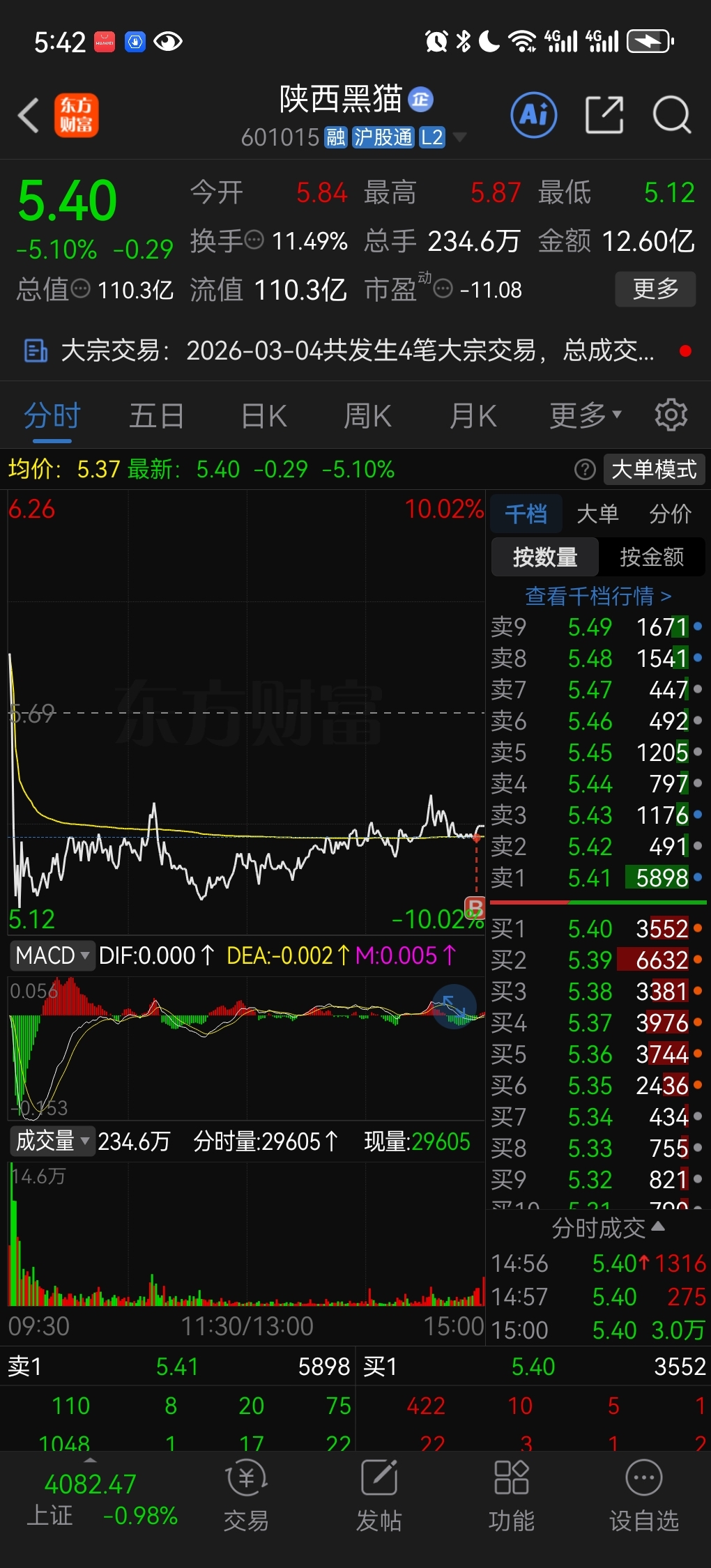 $陕西黑猫(SH601015)$ 跌这么多,为什么底部筹码不减,反而增加,等明天冲高就砸盘