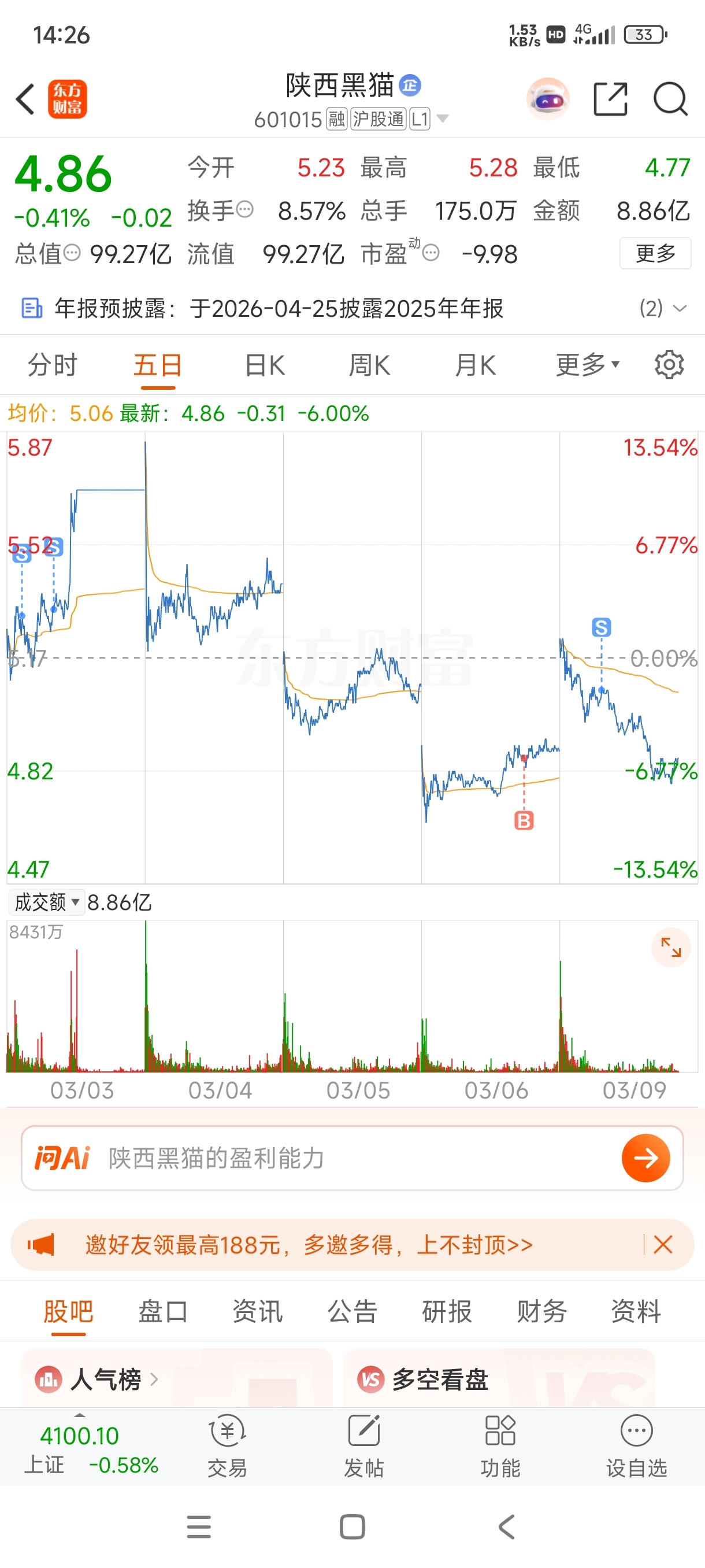 $陕西黑猫(SH601015)$ 吃一口就跑