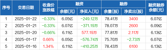 节能风电:融资净偿还249.12万元,融资余额6.05亿元(01-22)