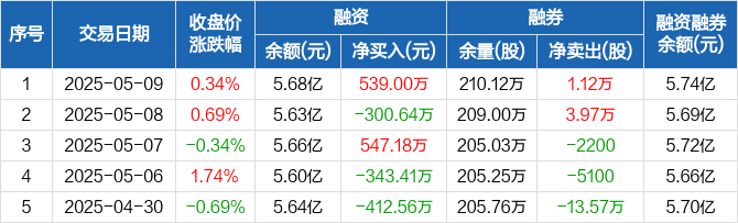 节能风电:融资净买入539万元,融资余额5.68亿元(05-09)