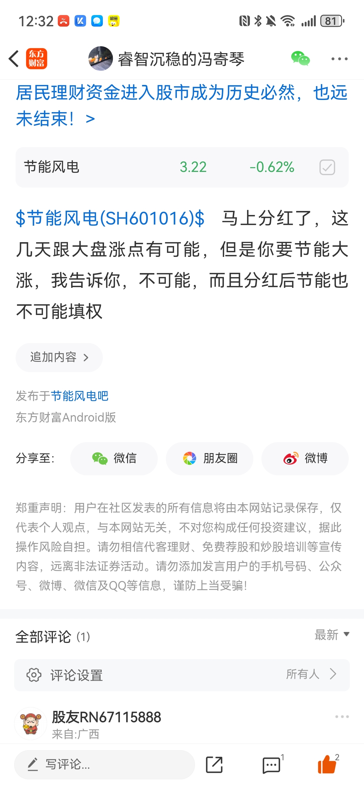 $节能风电(SH601016)$ 新进来的还是不知道节能的尿性,现在就是大盘破4000点,节能也不会动。因为分红