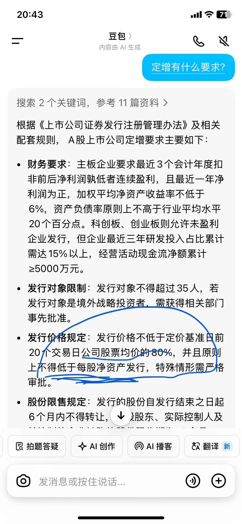 股价要涨到3.4才能定增吧。3.4*0.8=2.72大于2.71。